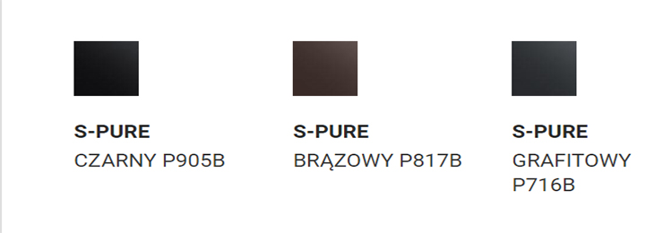- S-PURE - Powłoka produkowana jest przez największego producenta stali na świecie - ArcelorMittal. Powłoka S-Pure to znakomita odporność na korozję, promienie UV oraz dobra odkształcalność materiału. Oto jej najważniejsze parametry techniczne: przyczepność powłoki (gięcie w T) ≤ 2 T; odporność na pękanie przy zginaniu (gięcie w T) ≤ 3 T; odporność na uderzenia 18 J; twardość powierzchni (skala „ołówkowa”) HB do H; odporność na zarysowania (test Clemena) ≥ 2 kg. Powłoka cynku to min. 275 g/m². Jeśli szukasz powłoki, którą charakteryzuje ciekawa struktura połysku to S-Pure jest właśnie dla Ciebie.