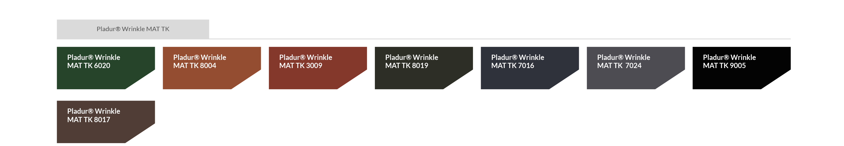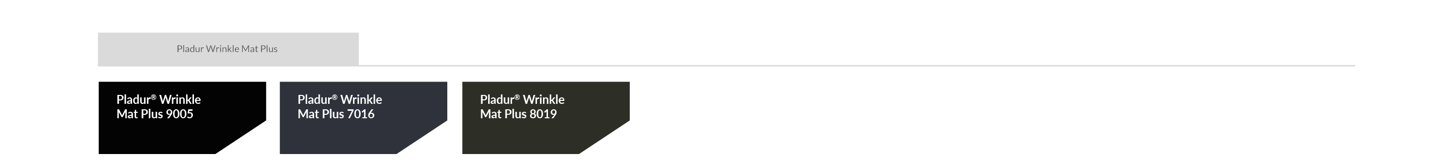 Pladur®Wrinkle Mat Plus Powłoka Pladur®Wrinkle Mat Plus perfekcyjnie zabezpiecza dach, wydłuża jego żywotność, zapewnia najskuteczniejszą ochronę antykorozyjną oraz niezmienny kolor połaci na długie lata. Pladur®Wrinkle Mat Plus dostępny jest w trzech eleganckich, matowych wersjach kolorystycznych: czerni, brązie i graficie | |