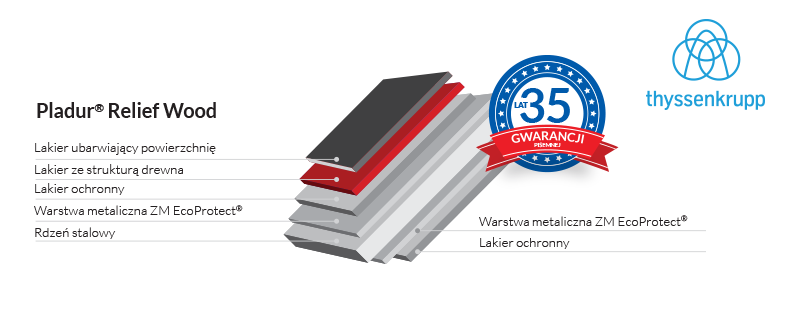 Wysokość przetłoczenia uskoku dachówki: 35 mm,